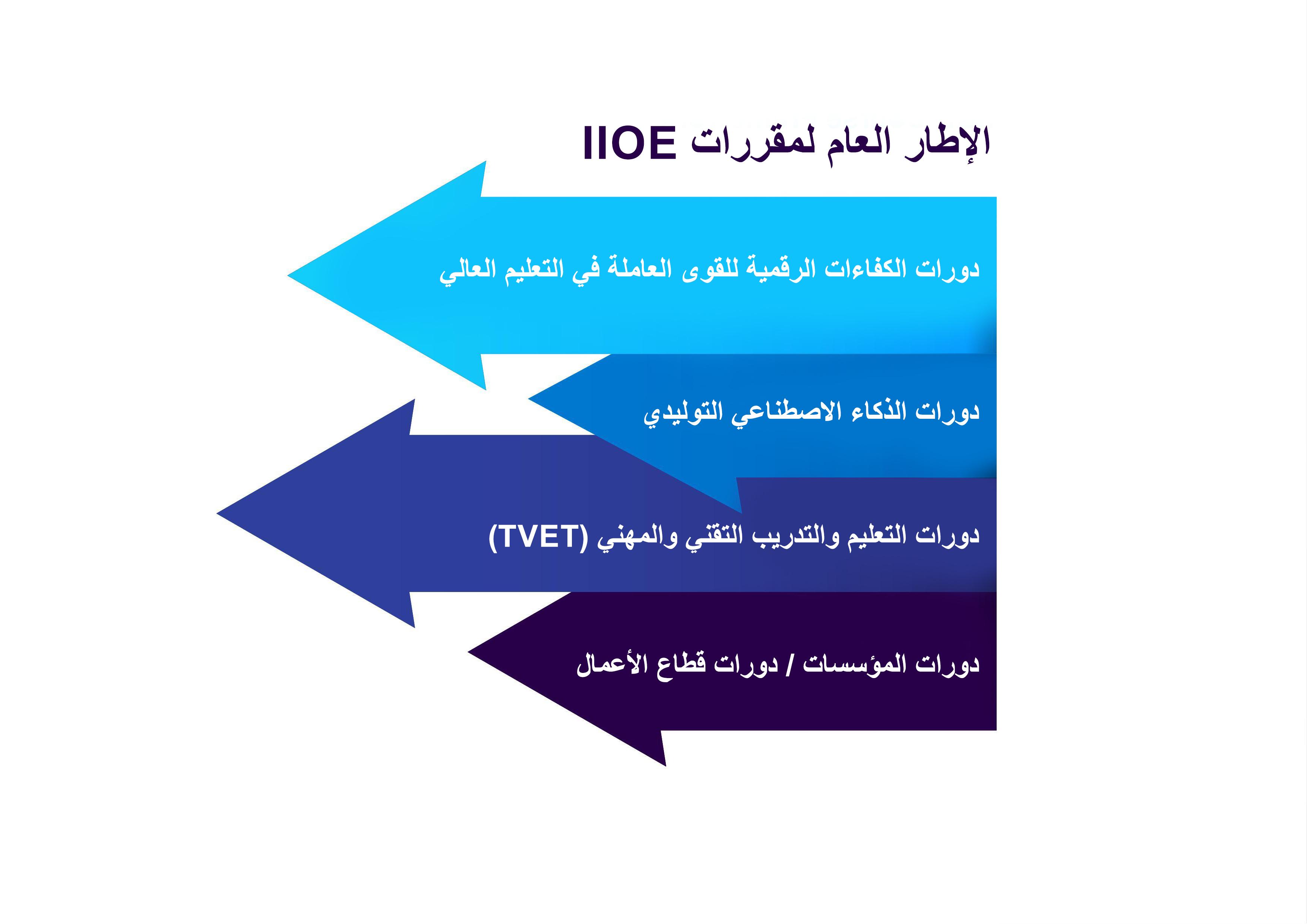 تشمل الدورات المقدمة ضمن الشهادة المصغرة بـ IIOE في الوقت الحالي أربعة محاور هي: دورات القدرات الرقمية للعاملين في مجال التعليم العالي؛ دورات في الذكاء الاصطناعي التوليدي؛ دورات التعليم المهني والتقني؛ ودورات الشهادة المصغرة المخصصة للمؤسسات والشركات. وتلبي الاحتياجات المتنوعة للعاملين في مجال التعليم العالي على صعيد تطوير المهارات.