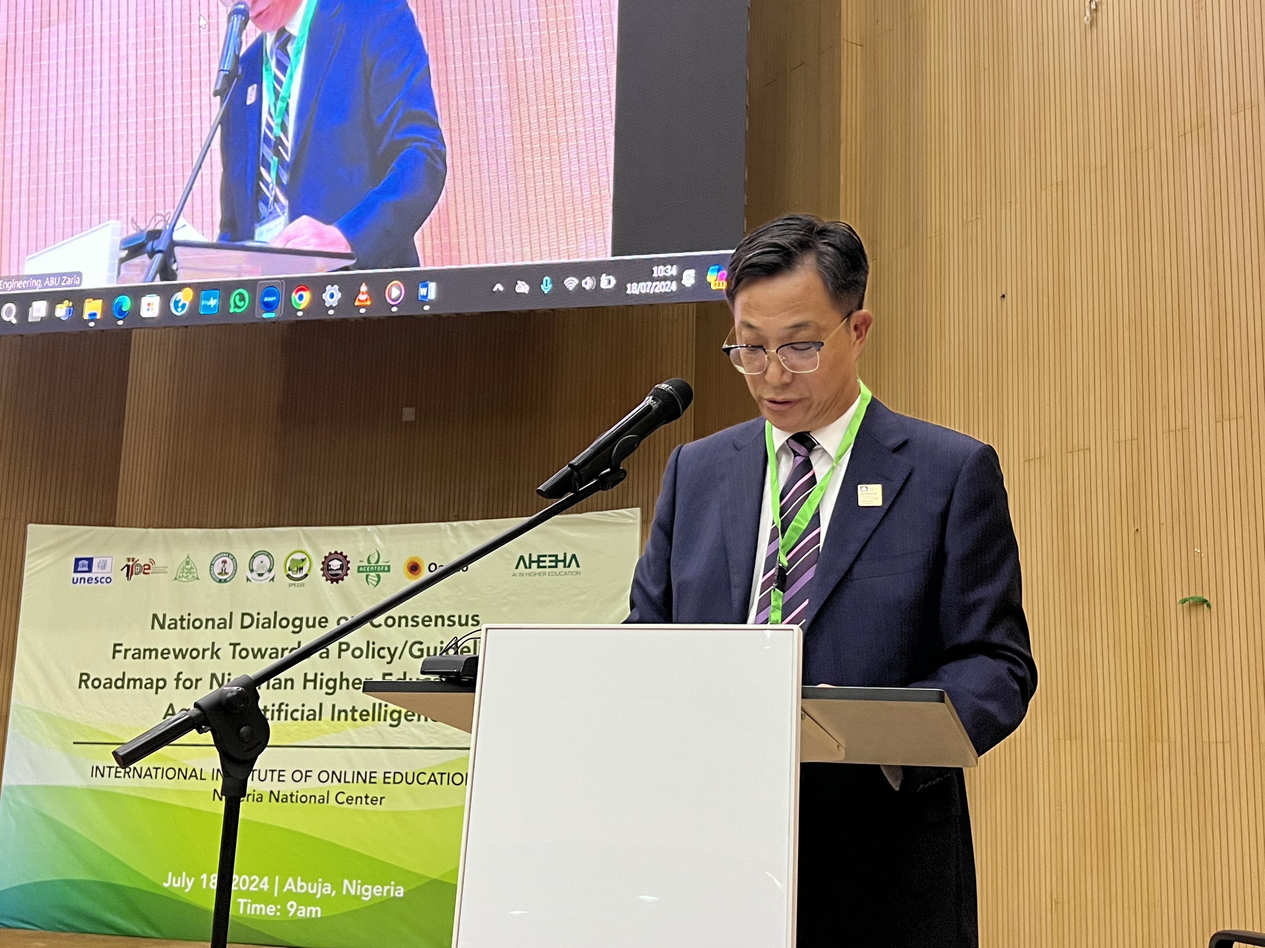 2024年7月18日,主题为“搭建人工智能时代的共识框架,开发尼日利亚高等教育政策路线图”的尼日利亚国家政策对话会(以下简称“政策对话会”),在尼日利亚首都阿布贾成功举办。该对话会由尼日利亚联邦教育部通过国家大学委员会指导,由联合国教科文组织高等教育创新中心(中国深圳)(以下简称“创新中心”)和2024年IIOE轮值主席单位尼日利亚艾哈迈德·贝洛大学联合主办。来自尼日利亚国家大学委员会、尼日利亚通讯创新与数字经济部、尼日利亚通讯委员会、中国驻尼日利亚大使馆、国家技术教育委员会、国家教育学院委员会、尼日利亚开放大学、教科文组织非盟联络处、创新中心、摩洛哥哈桑一世塞塔特大学、华为尼日利亚公司等机构的高等教育利益相关方近200人通过线上线下形式参与了本次政策对话会。