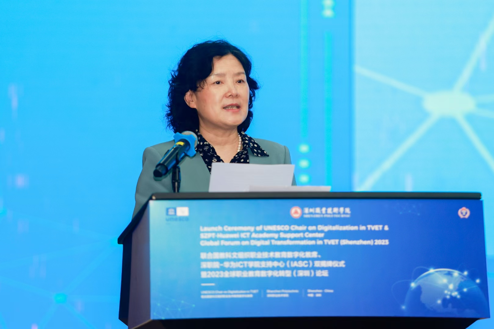 3月16日,联合国教科文组织职业技术教育数字化教席、深职院-华为ICT学院支持中心(IASC)双揭牌仪式暨2023全球职业教育数字化转型(深圳)论坛举行。联合国教科文组织高等教育创新中心常务副主任韩蔚应主办方深圳职业技术学院邀请代表创新中心出席揭牌仪式,并在开幕环节致辞。