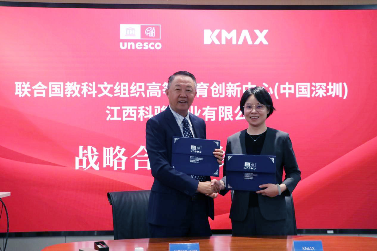2023年2月28日, 联合国教科文组织高等教育创新中心(下称“创新中心”)与江西科骏实业有限公司(下称“科骏”)签署战略合作协议与VR智慧实训室合作协议,双方拟定在VR软硬件资源共享、虚仿平台国际化、VR课程本土化建设、国际业务拓展等领域开展合作,创新中心项目或将融入VR新元素,为亚非发展中国家高校带来新技术、新应用与新生态。创新中心主任李铭、常务副主任韩蔚,科骏总裁兰淑贤、总裁助理兼海外营销中心负责人王雨霏等参加了签约仪式。